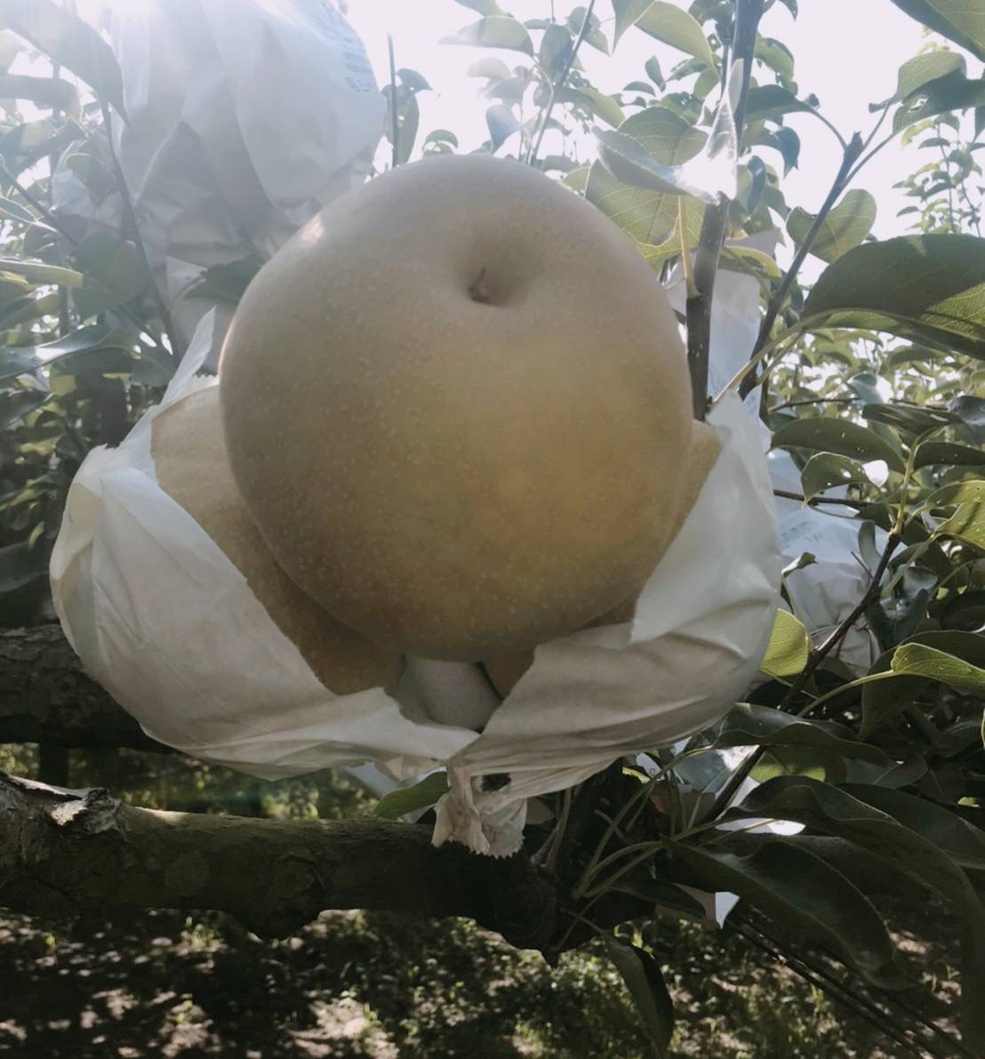 果皮本是青褐色,套袋後呈土褐色,有明顯果斑,果實碩大,果肉細緻多汁且甜美清脆,較耐冷藏保存。