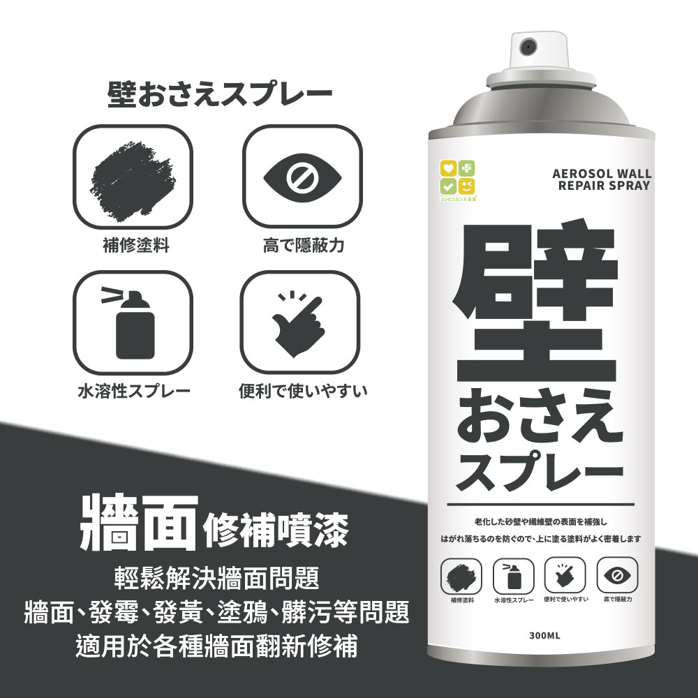 熱銷現貨-外銷日本直噴式水性牆面修補噴漆300ML(2罐/組)-日本人の清潔秘技 .DIY超輕鬆!一噴就能遮蓋髒污 | [分享商店] 歪嘴姬家族商店(請其他主購勿開團下單)
