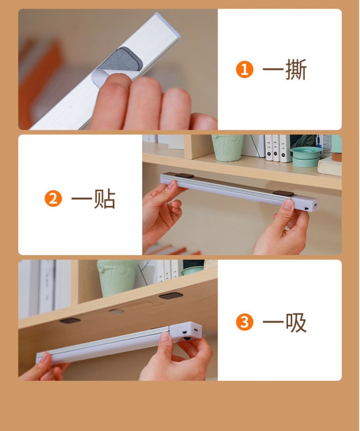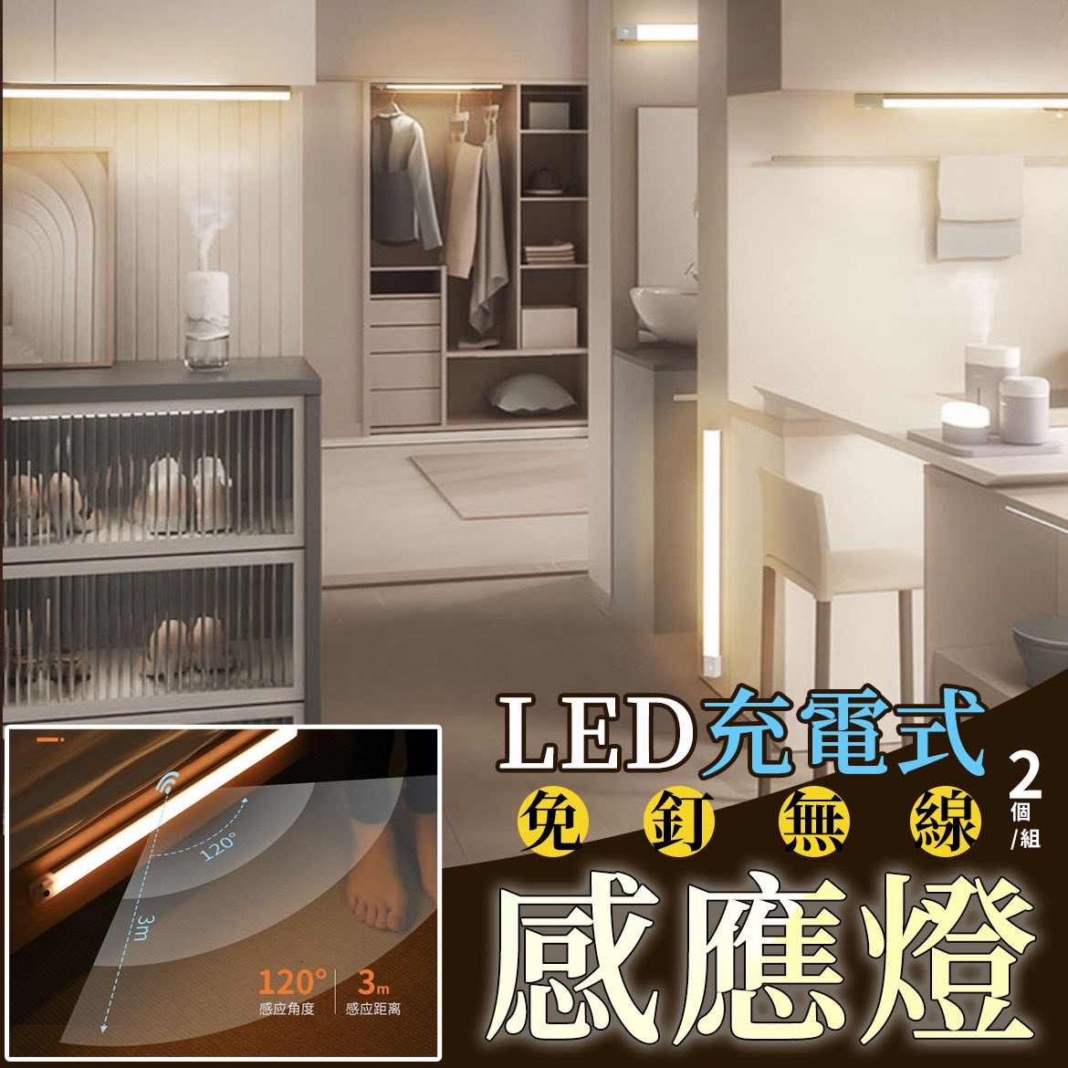 可裝在櫥櫃、衣櫃、鏡前、走道等地方