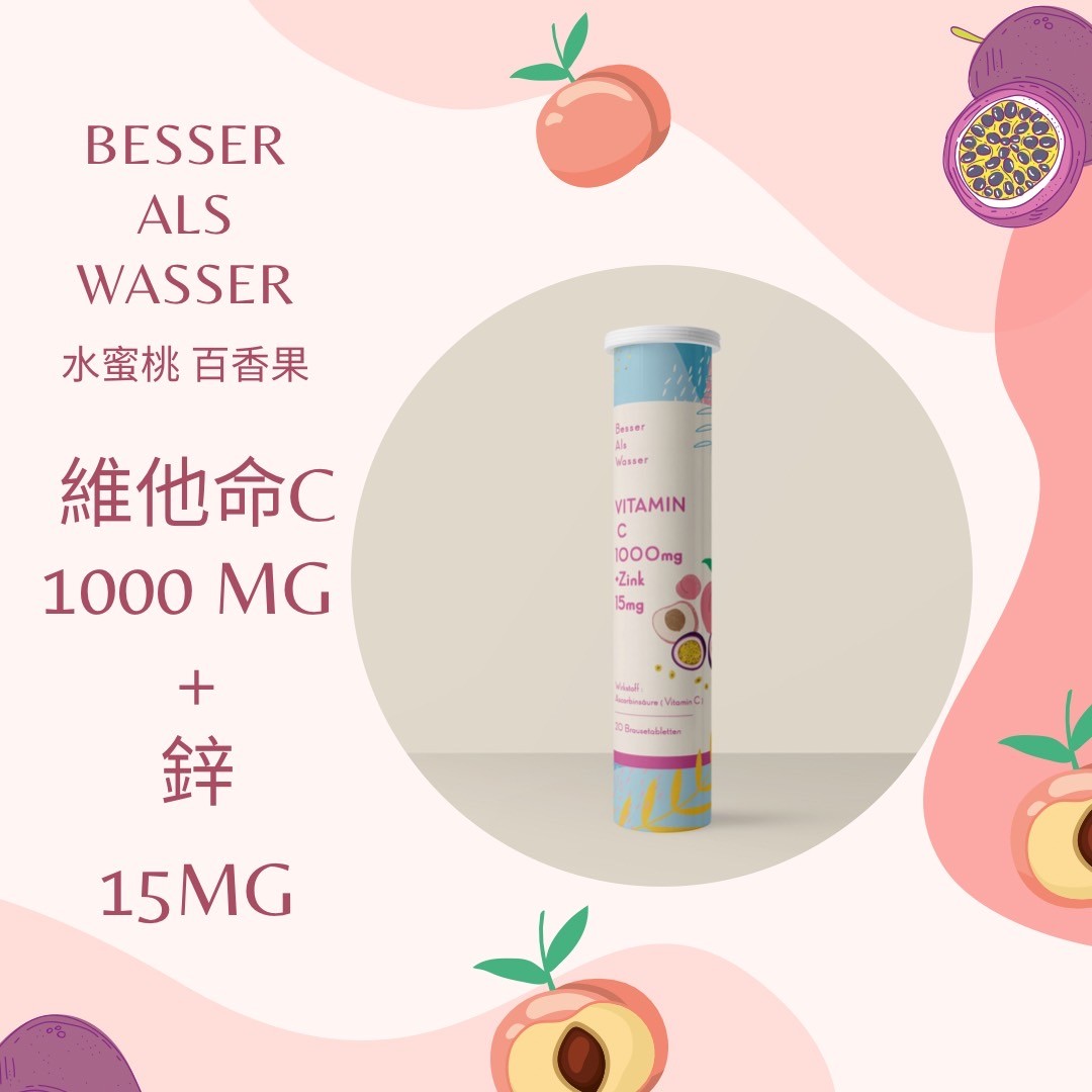 德國原裝進口高單位發泡錠 維他命c 1000mg+鋅15mg (z) )1管 20錠