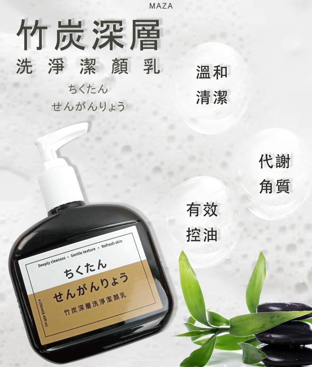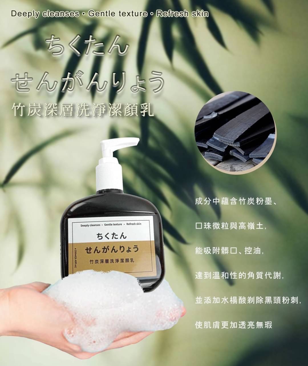 ✨竹炭深層洗淨潔顏乳,成分中蘊含竹炭粉墨,能吸附臉部的髒污、控油,達到溫和性的角質代謝,使肌膚潤澤保濕,潔淨舒爽。