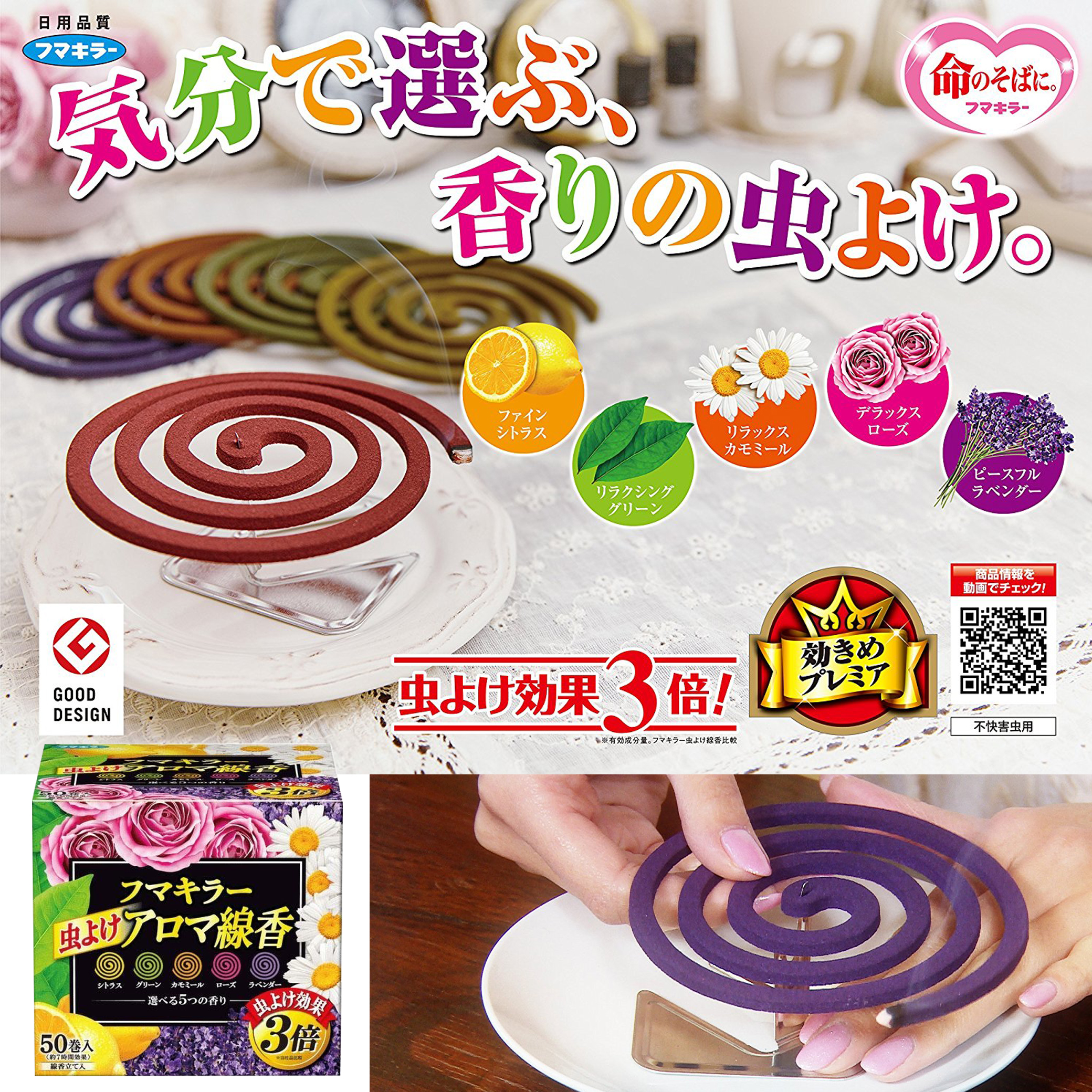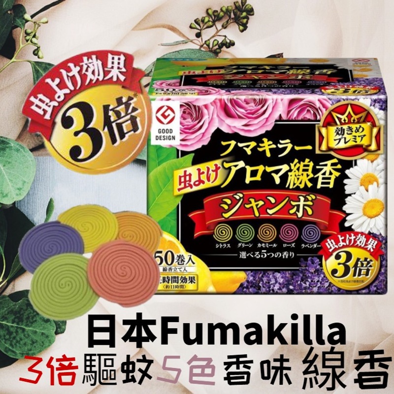 日本Fumakilla 驅蚊蚊香 線蚊香5色香味 3倍防蚊