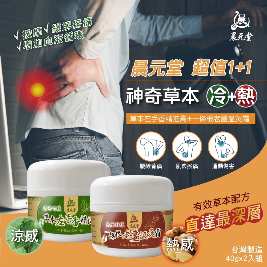 📢超值1+1 晨元堂 神奇🌿草本左手香精油膏+一條根老薑溫灸霜(冷➕熱超值2入組)
