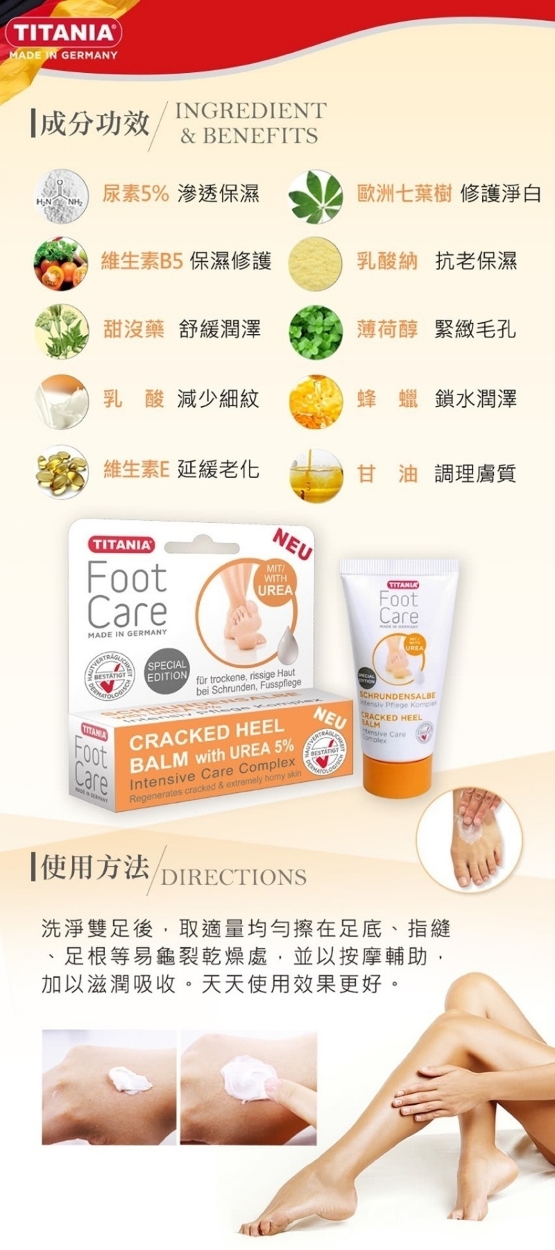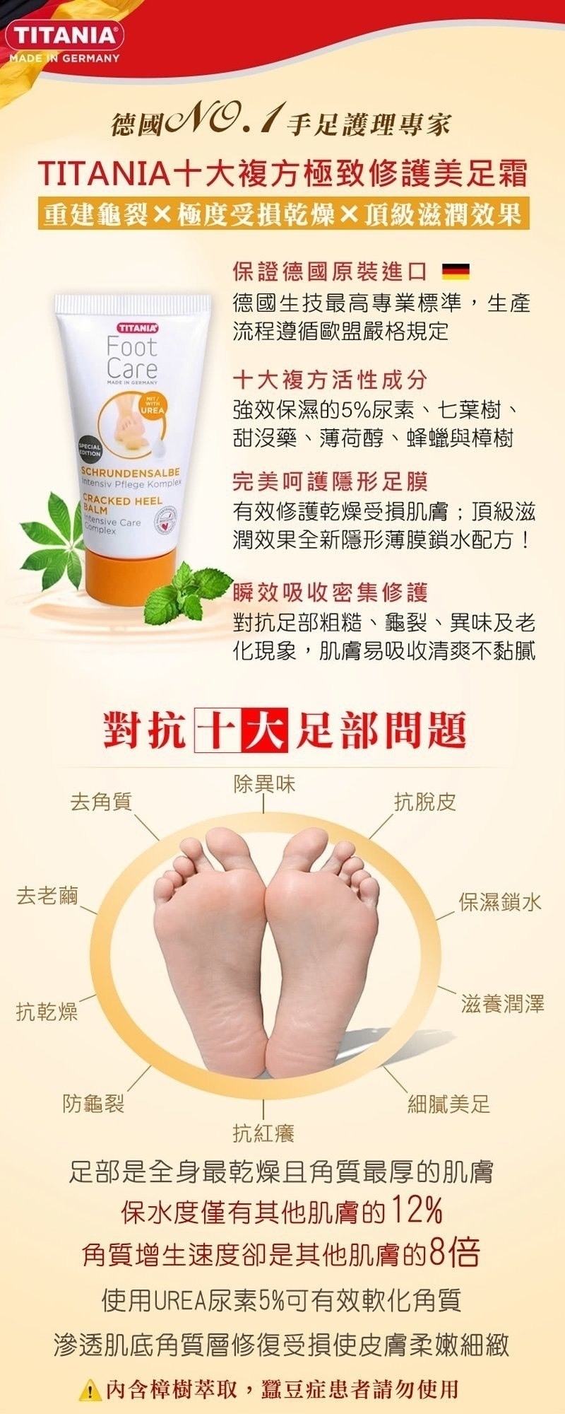 🔶 十多種複方成分能深層修護龜裂腳跟滋養霜