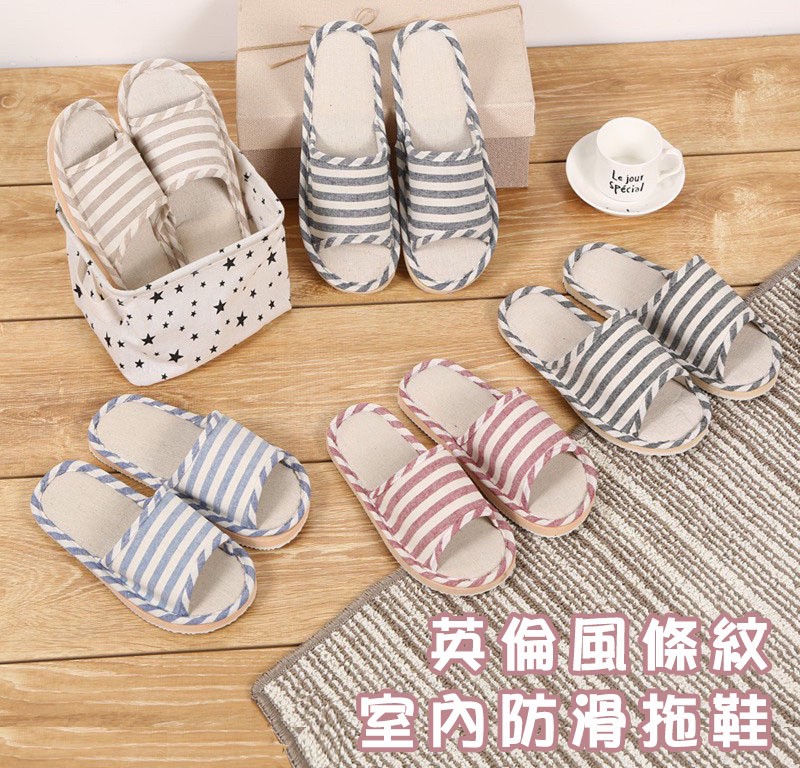 4/18收單- 熱銷新款-簡單好看.舒適好穿-英倫風條紋室內防滑拖鞋 | [分享商店] 歪嘴姬家族商店(請其他主購勿開團下單)