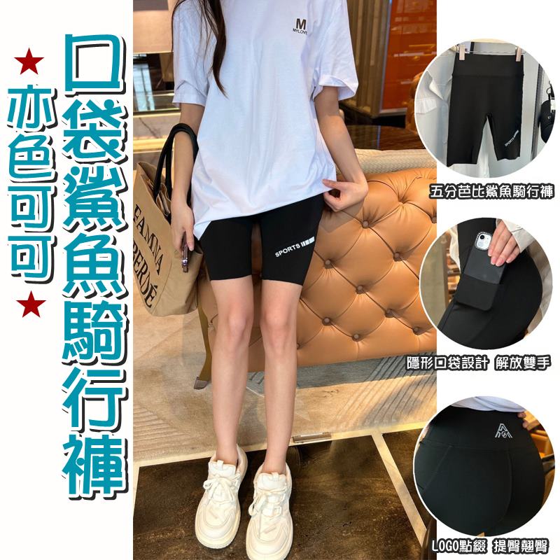 夏季show身材必備單品😍口袋設計運動風🏃🏻♀️顯瘦五分鯊魚褲