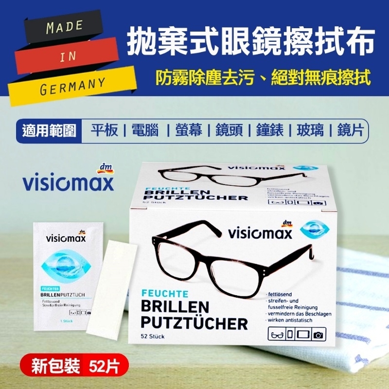 5/16收單-熱銷許願 ~德國原裝品質保證(德國VISIOMAX - 眼鏡螢幕擦拭濕紙巾52包)現貨限量 -把握機會。降價啦~ | [分享商店] 歪嘴姬家族商店(請其他主購勿開團下單)