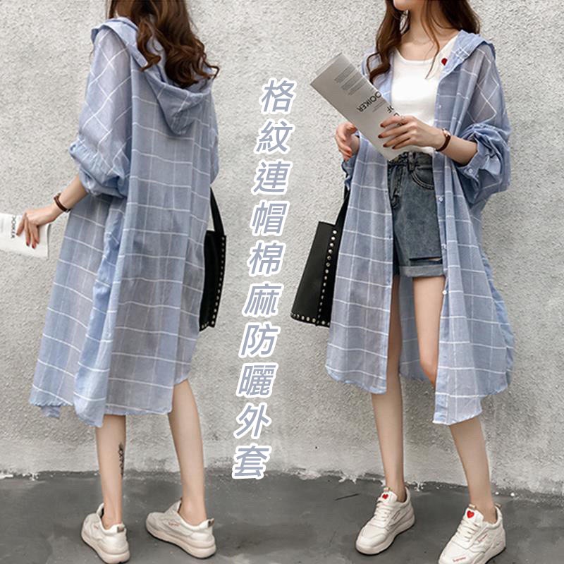 6/13收單-簡約好搭好看-夏日防曬-(格紋連帽棉麻防曬外套) | [分享商店] 歪嘴姬家族商店(請其他主購勿開團下單)