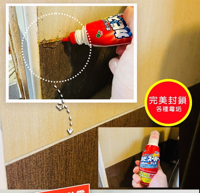 凝膠跟噴劑都可迅速去除黴菌凝膠適合用在矽利康或垂直面的接縫處