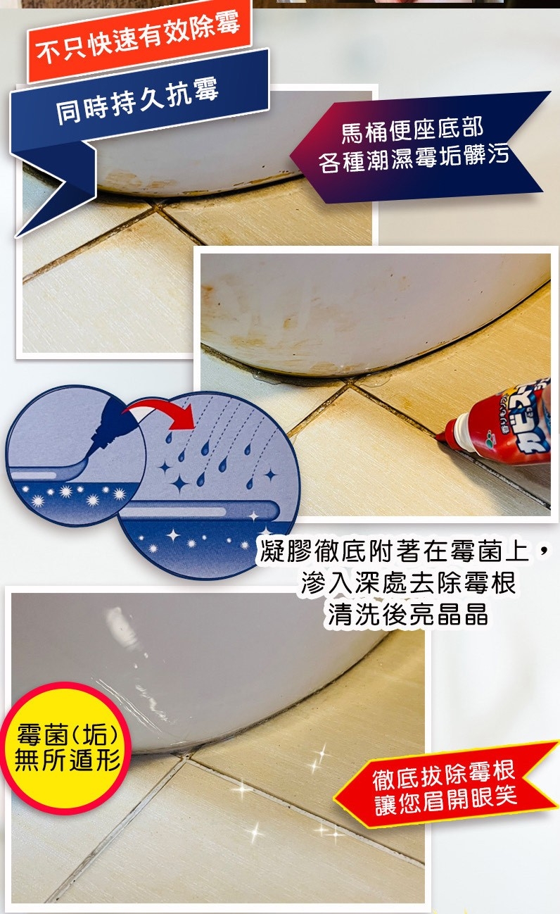 ✅強力去污成分,有效滲透污垢及黴菌
