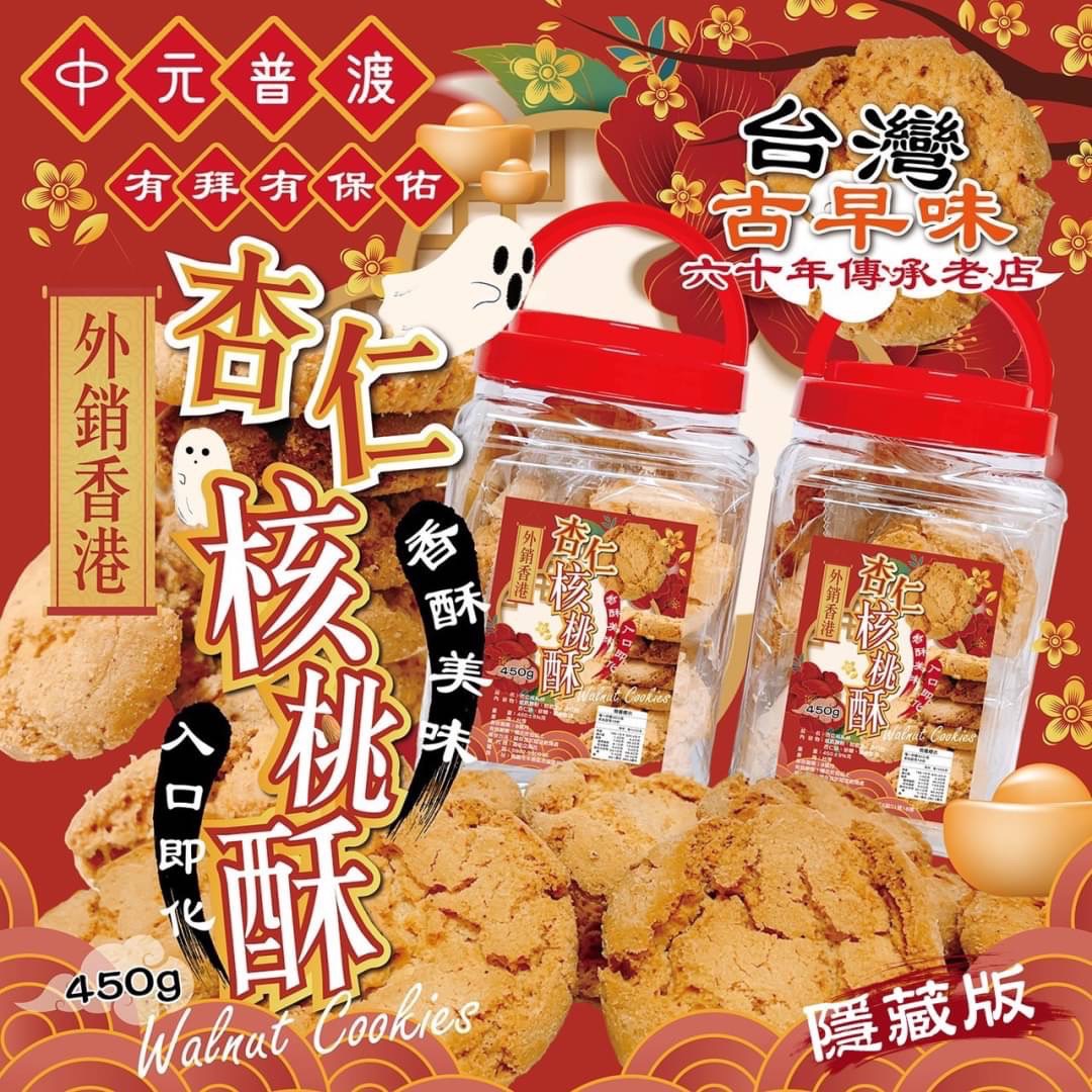 台灣古早味六十年傳承老店-💥外銷香港🇭🇰隱藏版杏仁核桃酥-(台灣古早味杏仁核桃酥(450g/桶) | [分享商店] 歪嘴姬家族商店(請其他主購勿開團下單)