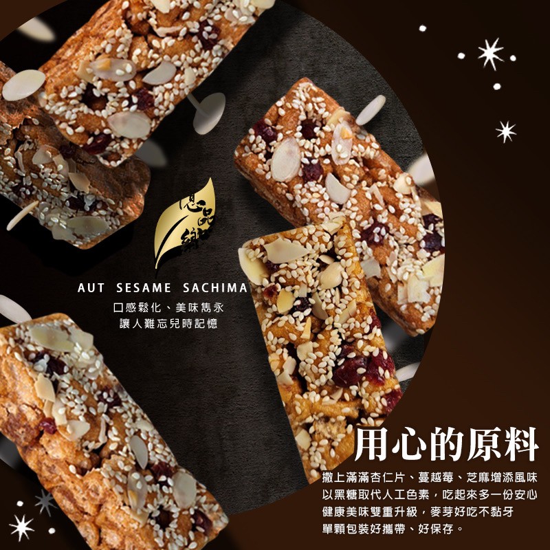 黑糖香氣伴隨杏仁片、蔓越莓、芝麻