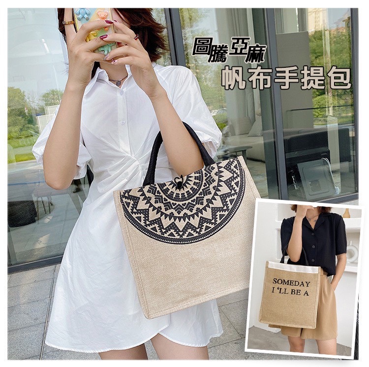 9/26收單-熱銷新款 .好榙方便-(圖騰亞麻帆布手提包) | [分享商店] 歪嘴姬家族商店(請其他主購勿開團下單)