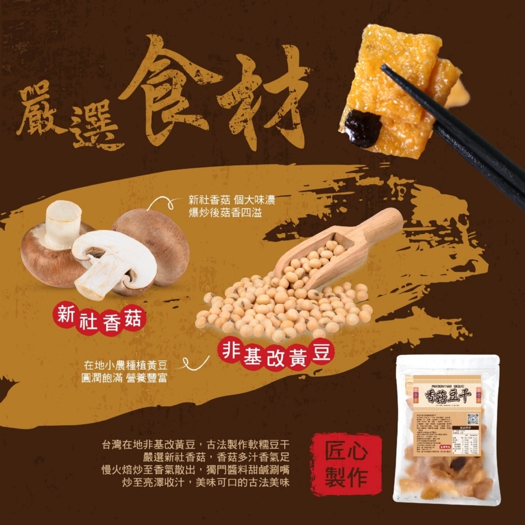 採用台灣在地🉐非基改黃豆製成的豆乾