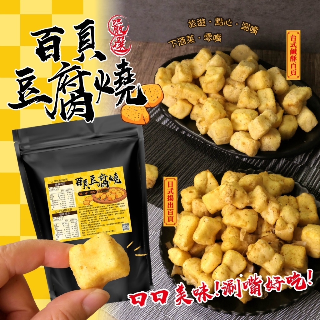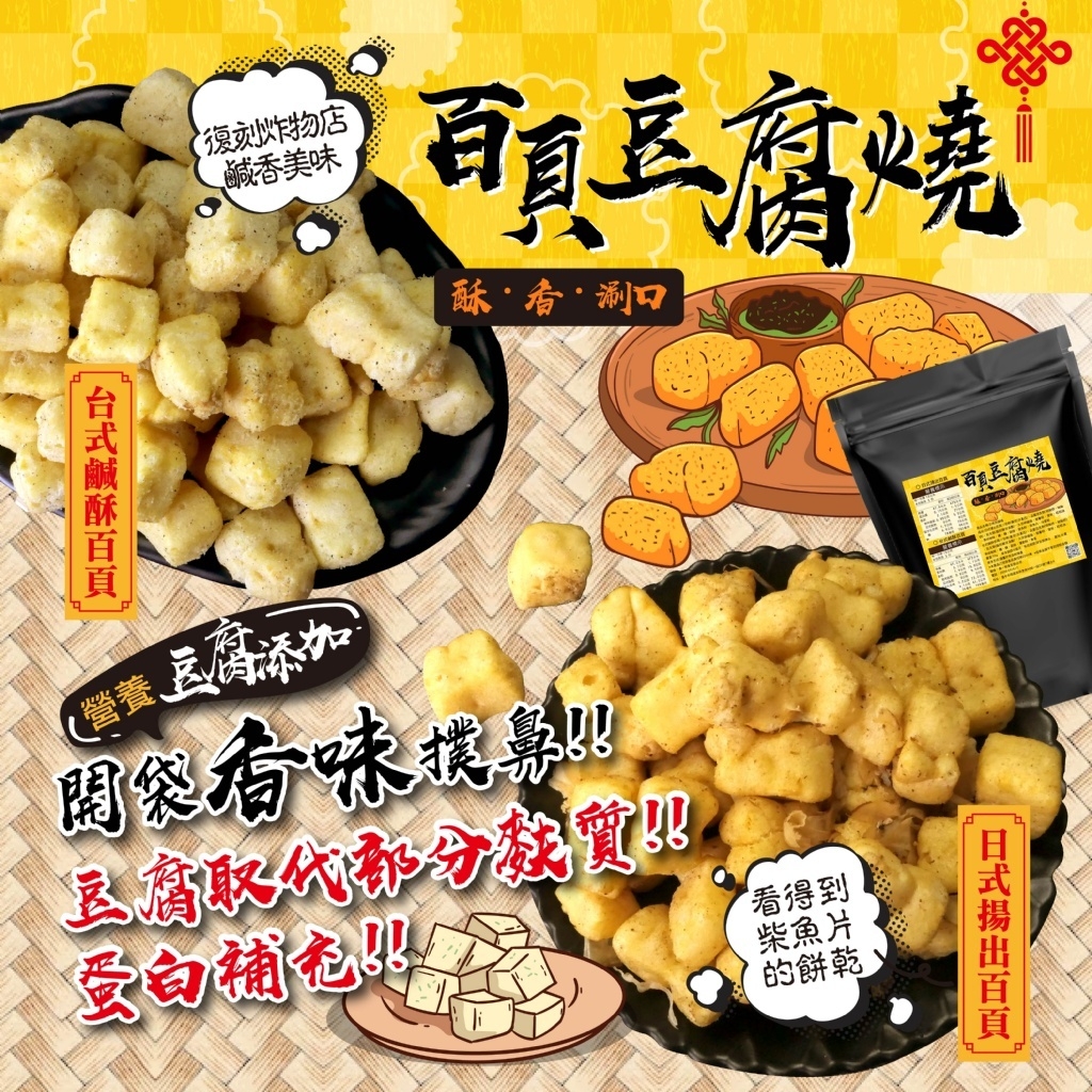 台式鹹酥百頁//豆腐【黃豆(非基改)、品質改良劑(硫酸鈣、碳酸鈣)、乳化劑(酯肪酸甘油酯)、