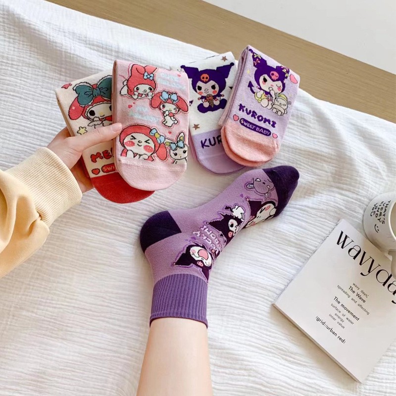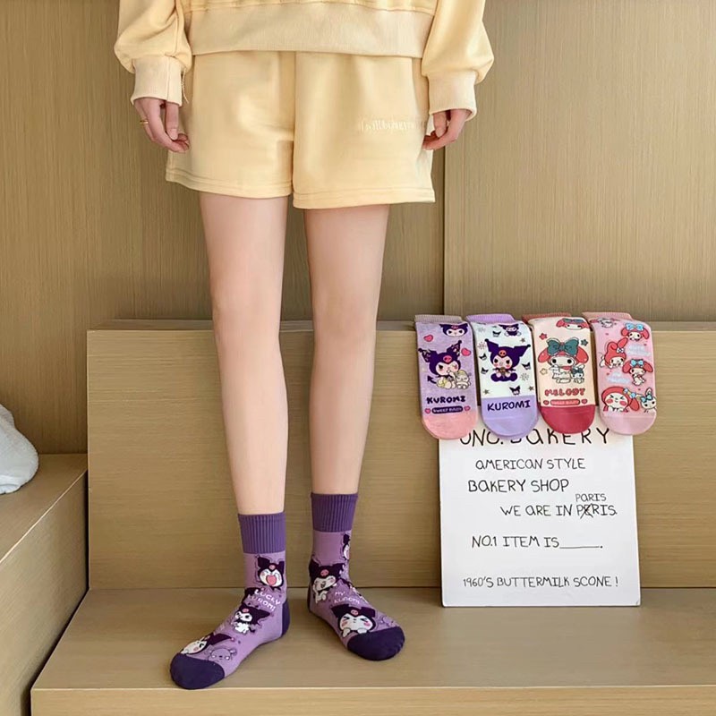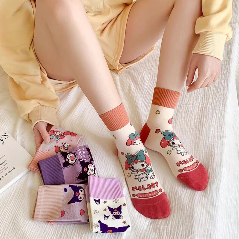 1/14收單- 熱銷新品-質感好精梳棉-卡通撞色三麗鷗成人中筒襪(5双/組) | [分享商店] 歪嘴姬家族商店(請其他主購勿開團下單)