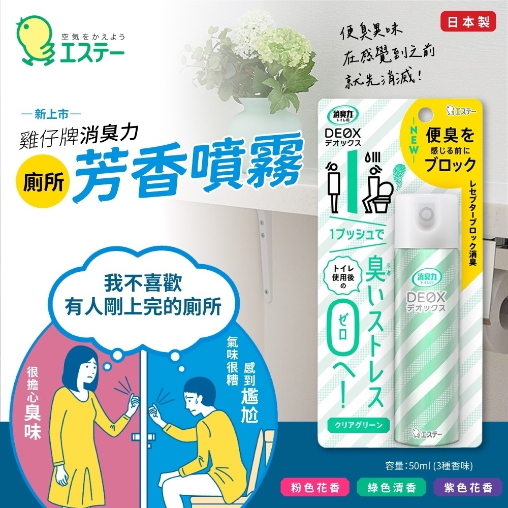✅品名:雞仔牌消臭力廁所芳香噴霧 (粉色花香/綠色清香/紫色花香)味道隨機