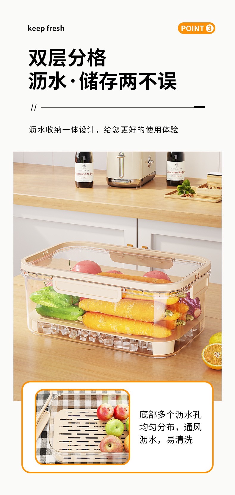 🍎雙層分格 瀝水·儲存兩不誤,食材不泡水,保鮮更長久。