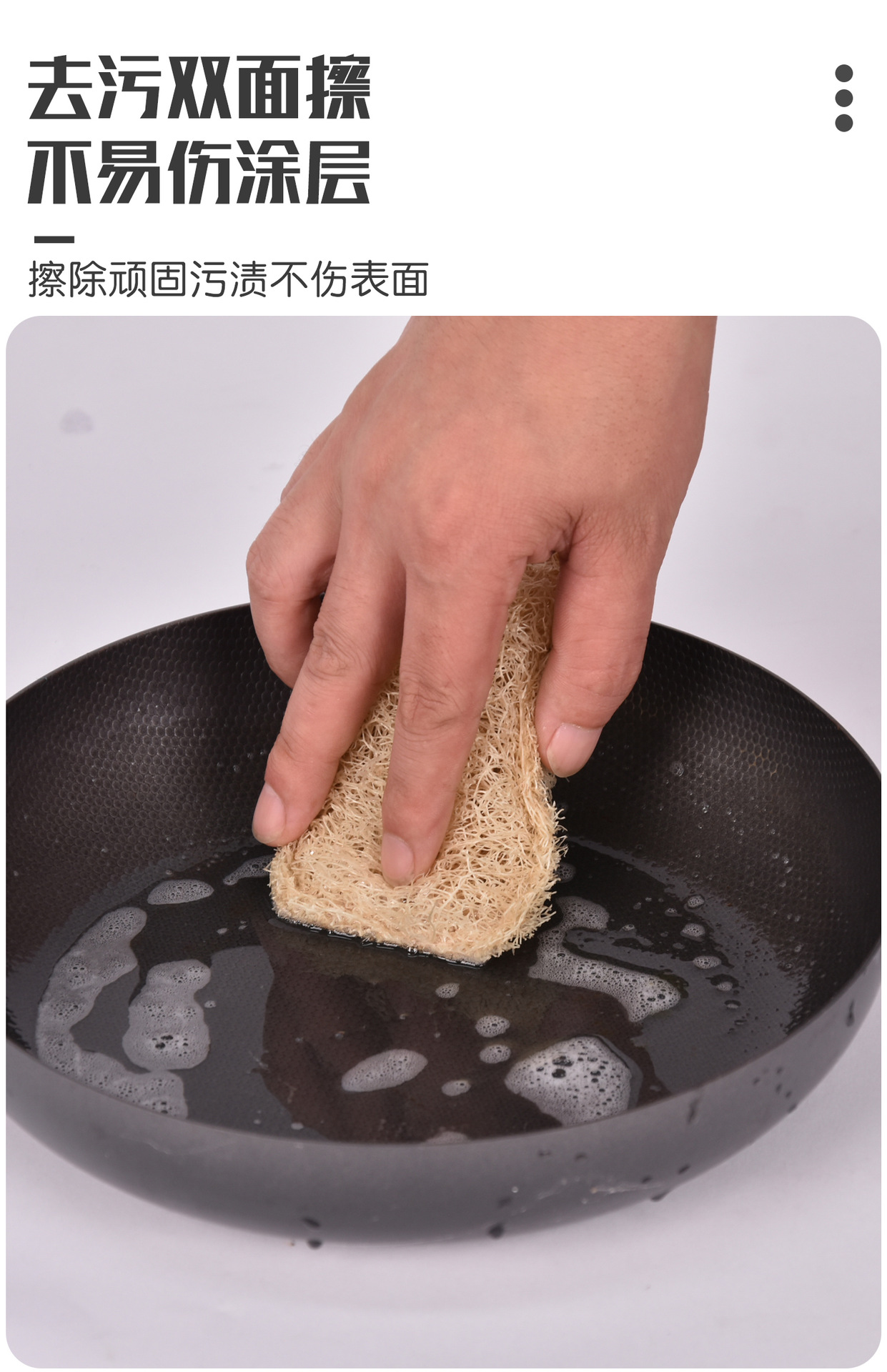 不傷鍋具表層,搭配洗潔精的效果更佳,