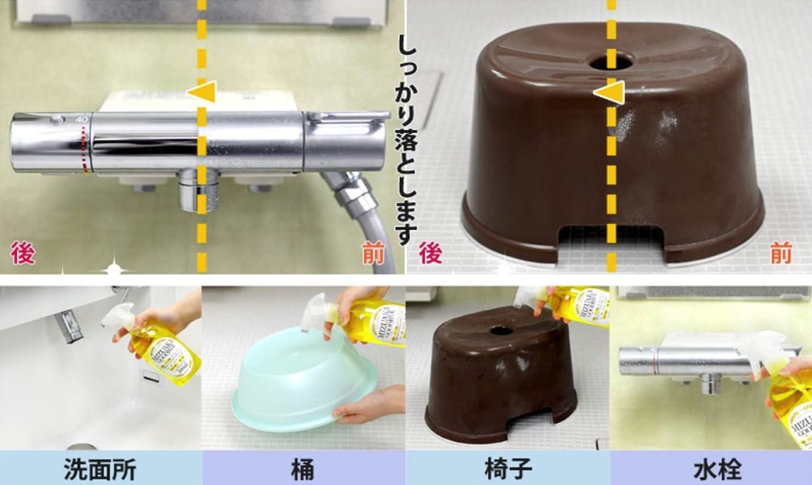 ●使用方法簡單, 只需要用水沖洗過後噴上一點,再用海綿輕輕刷過,就能把水垢清除囉!