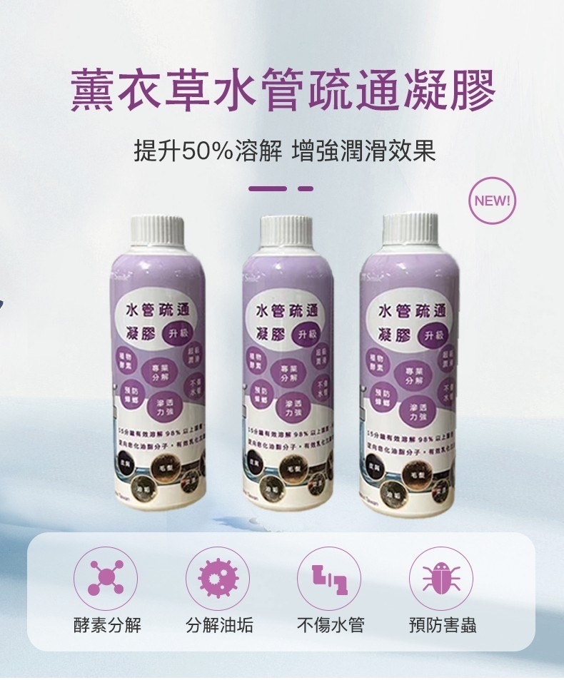 現在免煩腦哦,快來使用愛微酵薰衣草水管疏通凝膠 (加強版)