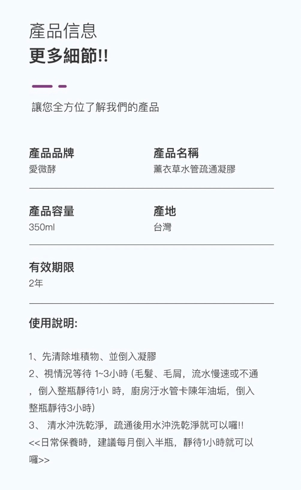 8/18收單-熱銷新品!愛微酵薰衣草水管疏通凝膠(加強版)350ml | [分享商店] 歪嘴姬家族商店(請其他主購勿開團下單)
