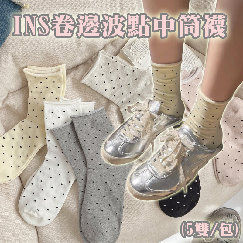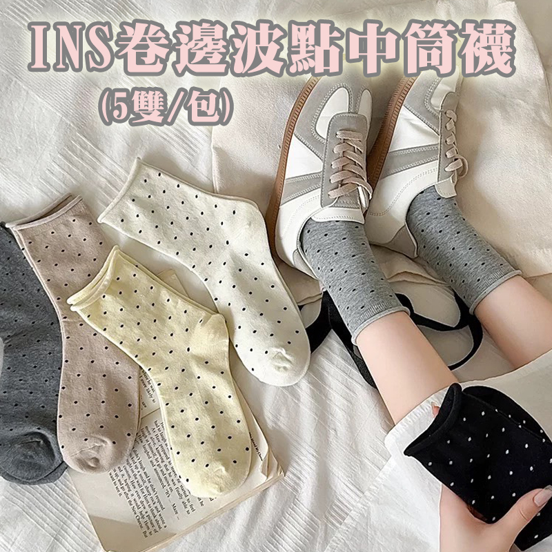 INS卷邊波點中筒襪(5雙/包)