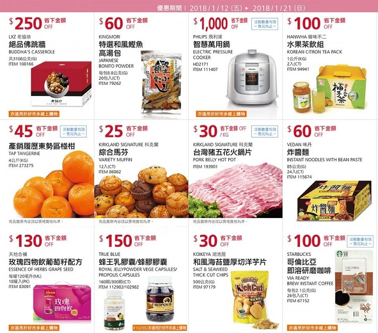 COSTCO 商業配送 2017/12/25~2018/1/21 特價商品