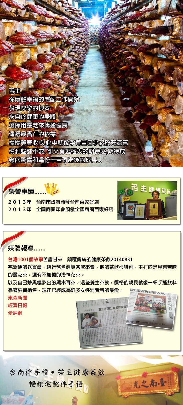 招牌養身靈芝茶以及各式健康茶飲,因品項不同而熬煮費工四至八小時,