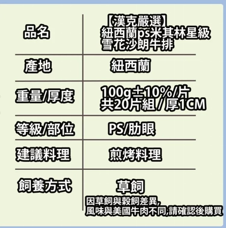 2.商品品名:紐西蘭ps米其林星級雪花沙朗牛排