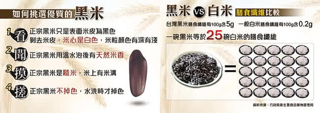 黑米營養豐富 /一碗黑米等同25碗白飯膳食纖維/有黑珍珠和世界米中之王的美譽 /