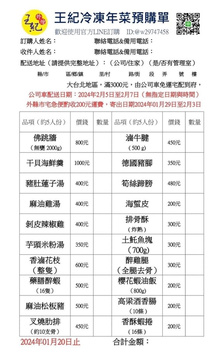 王記年菜來了...1/30W2到 | [分享商店] 綜合大樓團購團專用分享商店