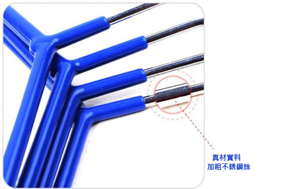 不鏽鋼材質不易生鏽 特殊材質不易生鏽而讓衣物沾染,也不易變質損壞脆裂讓衣物掉落地面,室內外皆宜,掛勾部分採用加粗不鏽鋼絲,經久耐用