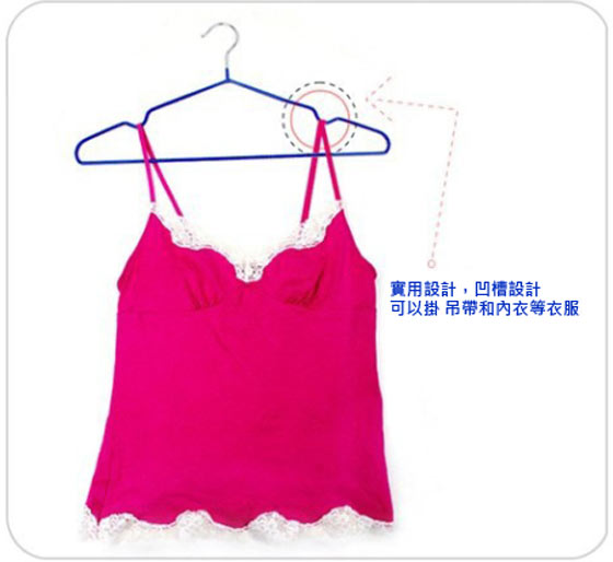 凹槽,方便固定衣服,就算是不好吊掛的細肩帶衣物也一樣不會滑落。