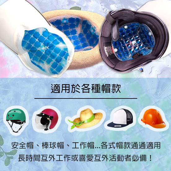 提神醒腦、不中暑、不癢、不易流汗,耐磨耐熱,而且冰涼好舒服唷!