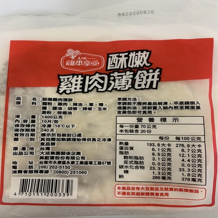 已流團 - 市價💰220元~【大成】酥嫩雞肉薄餅~採用雞腿肉 ~與 一般蔥油餅截然不同  | [分享商店] 維力家族專用