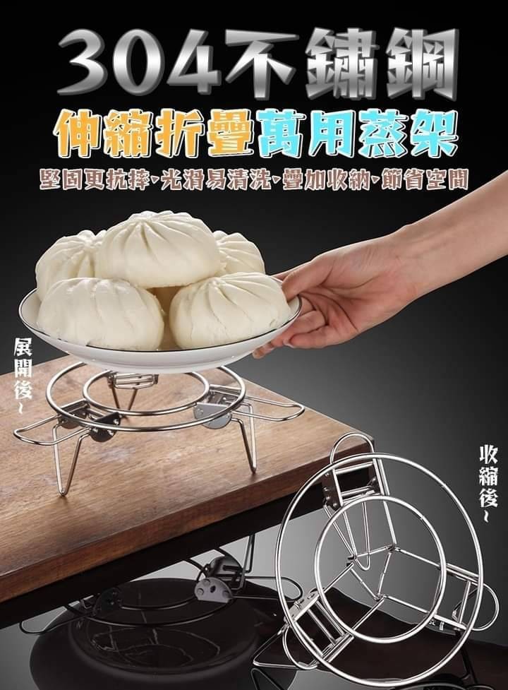 304不鏽鋼伸縮折疊萬用蒸架,採用304不銹鋼材質,耐用又安全,最吸引人的是,它可以伸縮,適應各種大小的鍋  | [分享商店] 西屯好康團
