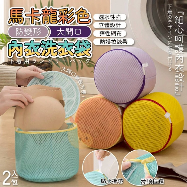 馬卡龍彩色防變形大開口內衣洗衣袋(2入一包)