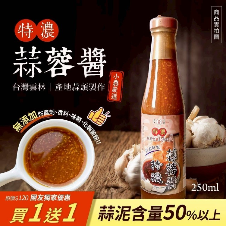 台灣雲林 小農嚴選特濃蒜蓉醬250ml (買一送一)