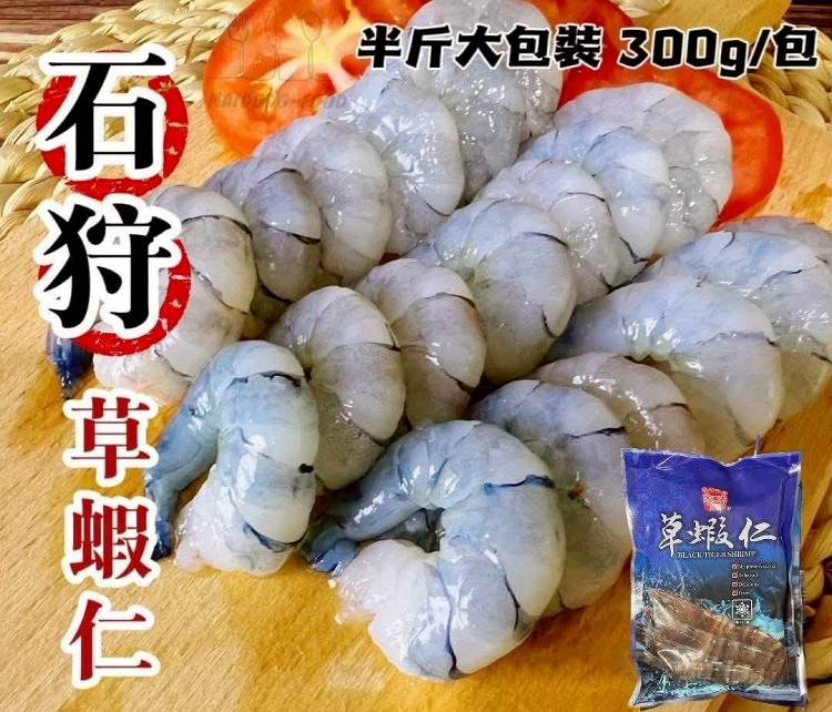 重量:300g/包(含保護冰約25%,實際約20-23隻草蝦仁)