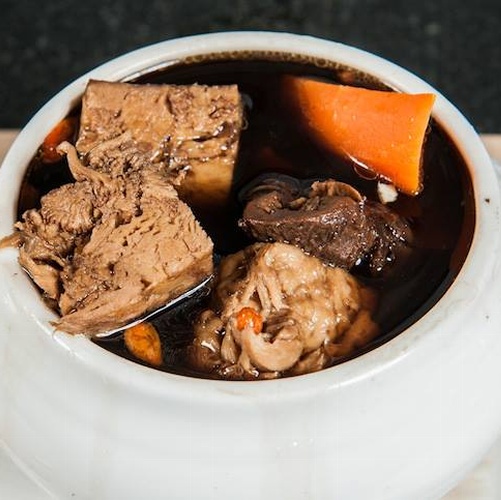 採用多種上等中藥熬煮而成的煲湯,內含豆包、香菇、杏鮑菇等上等食材,透過完美比例融合,新鮮熬煮湯頭甘醇料入味,不油不膩,可補充元氣增加體力,一年四季食用皆宜,是最佳保健佳餚。