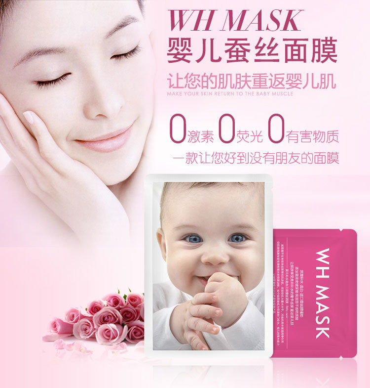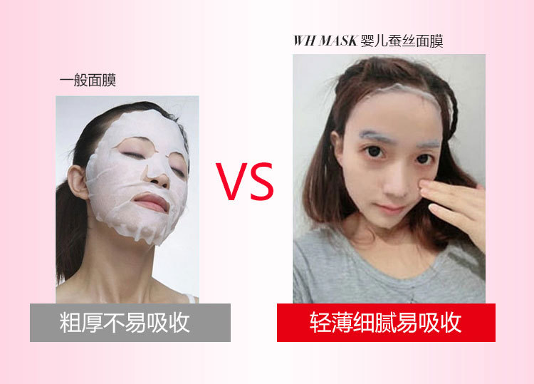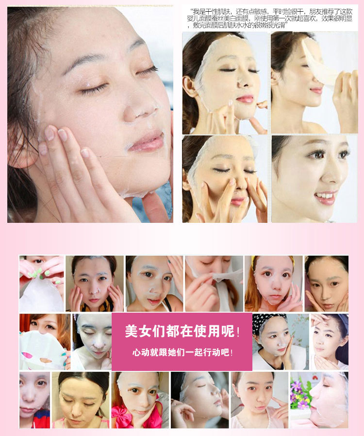 婴儿蚕丝面膜会使你的皮肤角质软化,让面膜可以很好的吸附皮肤分泌物以及污垢。当去除面膜时,污垢就可以一起被去除。从而深层清洁了皮肤