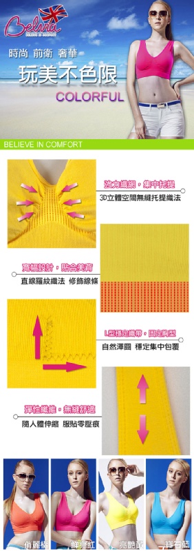 糖果色無痕內衣-內附托提墊(亮艷黃、寶石藍)各X1(不提供試穿,拆封試穿恕不退換)