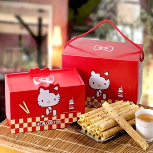 濃郁的蛋捲搭配養生的芝麻,以堅持不加一滴水的高品質,綿密清香的口感,創造好口碑,全新可愛自然風格的圖案,使用木盒材質設計,上蓋用以kitty特有的可愛領結造型做抽取,讓食用蛋捲完畢後,可當作存放一些小型物件的收藏盒或面紙盒…等使用。