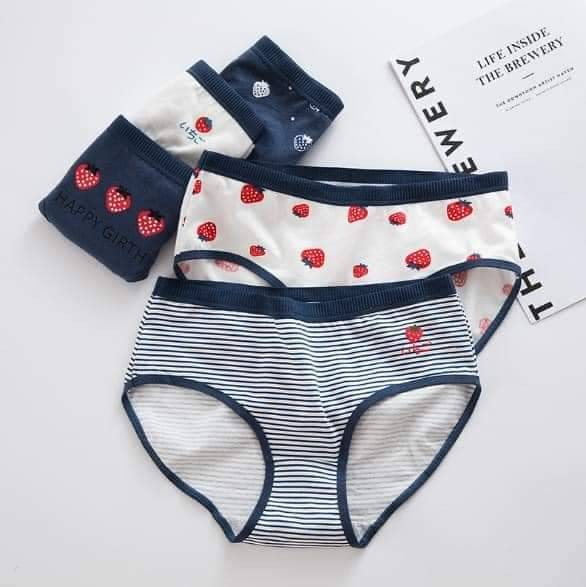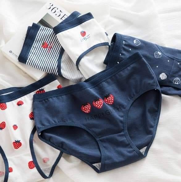 日系草莓純綿中腰包臀內褲(一組5件)