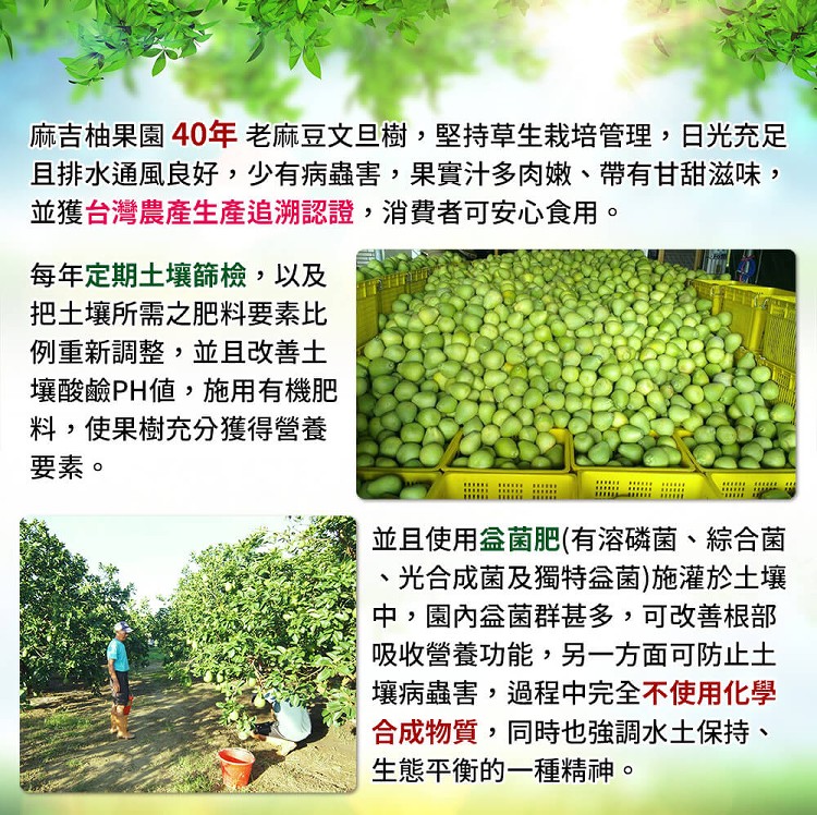 通過台灣安全蔬果吉園圃認證,健康柚子!