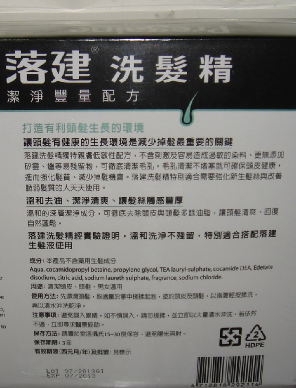 頭皮健康,進而強化髮質、減少掉髮機會。落建洗髮精特別適合需要強化新生