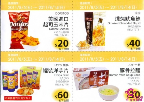 Doritos美國進口起司玉米片:原價125 特價105 / 珍珍燻烤魷魚:原價215元 特價175