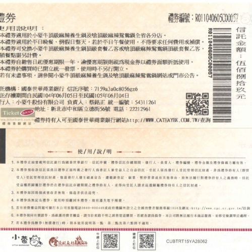 4.本禮券自銷售日起優惠期限一年,逾優惠期限則視為現金券以禮券面額折抵使用(銷售日為廠商購買日期,非團購時所購買日期,通常券會已經購買2至6個月了)