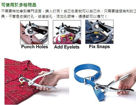 用途:可用作皮帶打孔器,衣服暗扣安裝